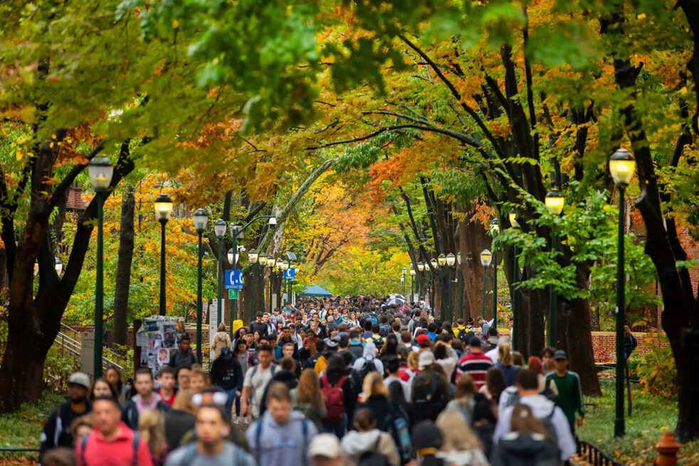 Students fill Locust Walk at the University of Pennsylvania. Photo by Eric Sucar.