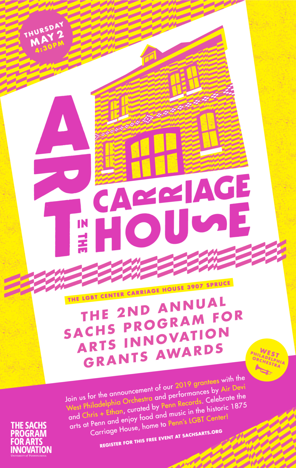 Please join The Sachs Program for Arts Innovation in celebrating their 2019 Grants Awards. Learn about this year’s grantees and join the arts community for food, drink and music at Penn’s LGBT Center.